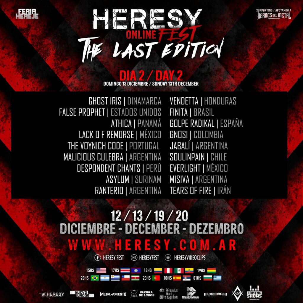 Heresy Fest es un festival creado para la difusión del Metal de Argentina y de muchos otros países del mundo. En plena pandemia del COVID-19, nació esta alternativa en versión online, para que la rueda de shows siga girando en este 2020 tan difícil para todas los artistas del mundo de la música.